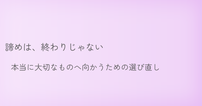 諦めは、終わりじゃないー本当に大切なものへ向かうための選び直し